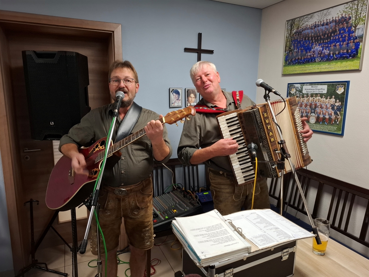 Wirtin Karola mit Elena und die Schänkkellner versorgen die Gäste mit leckeren Speisen und Getränken, sodass das Starkbierfest des FC Dornach wieder ein Erfolg wird. Die Musiker Rudi Zauner aus Thalhausen und Heiner Riedl aus Asbach, bekannt als „de Hogabuachan“, machen Musik vom Feinsten und sorgen mit ihren Beiträgen für gute Laune im Vereinslokal.