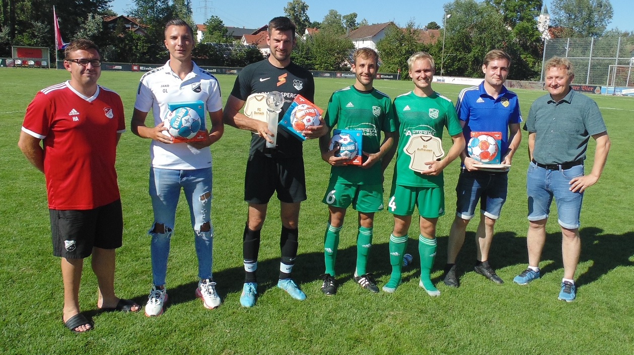 Siegerehrung von links: Andreas Haunfellner, Gabriel Lozancic, Siegerkapitän Martin Sommersperger, Torschützenkönig Moritz Mittermeier, Manuel Willnecker, Luis Toebe und BGM Josef Beham