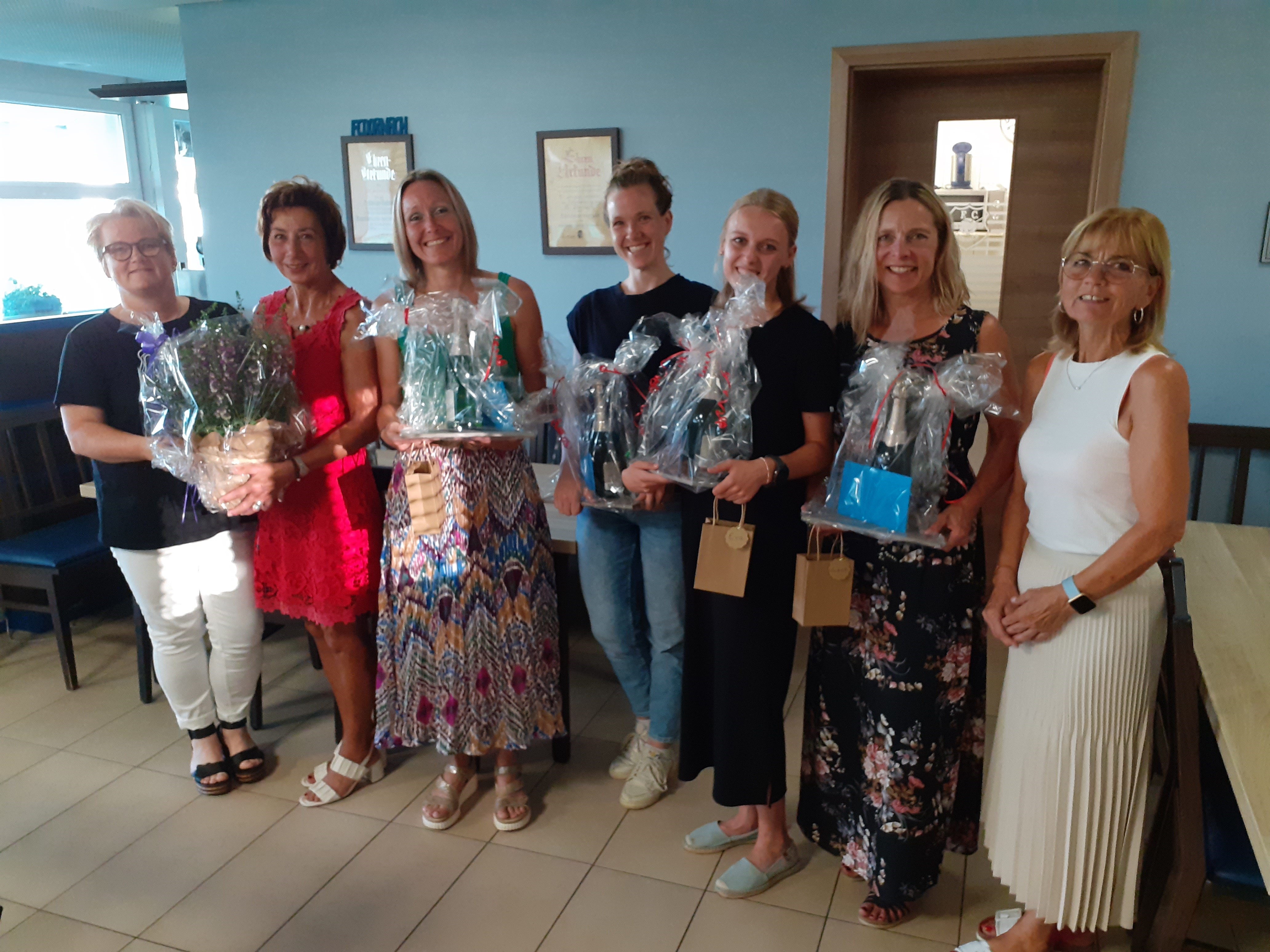 Die Übungsleiterinnen Kathrin Westenthanner, Andrea Bruckmeier, Sabine Salzberger, Andrea Salzberger wurden von Daniela Stangl geehrt und erhielten Geschenke. Als neue Übungsleiterin kommt Eva Knogl dazu und sie wurde herzlich empfangen.