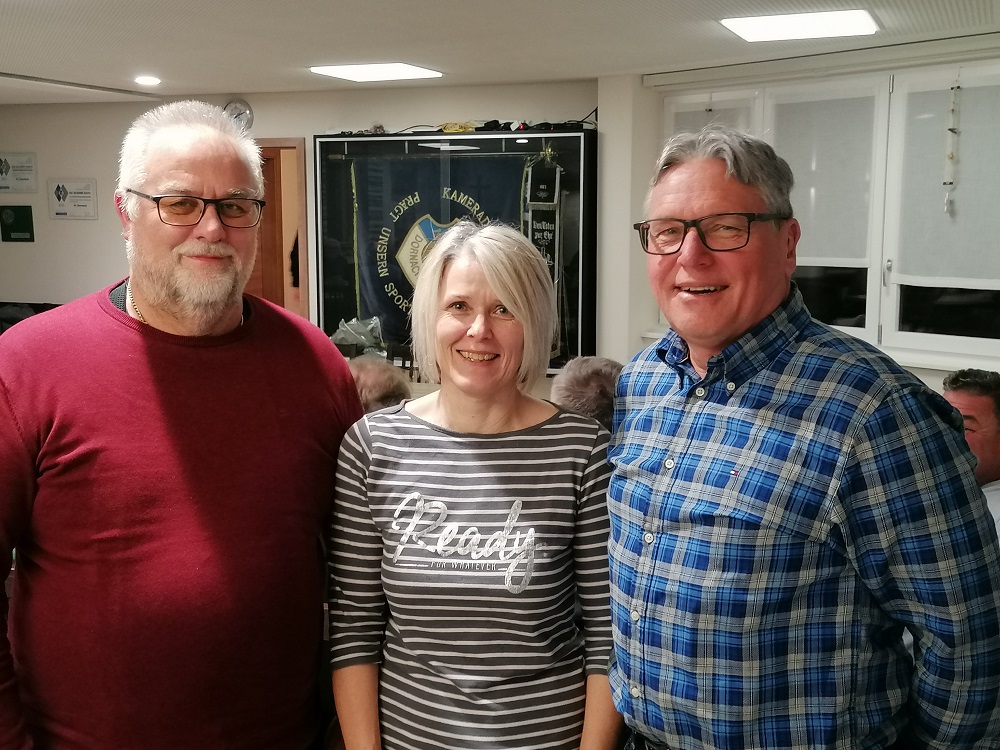 Bild: Vorstand Konrad Frischhut bedankt sich beim FC Vorstand Edi Moosauer und der Vereinswirtin Karola Freundorfer für die gute Bewirtung.