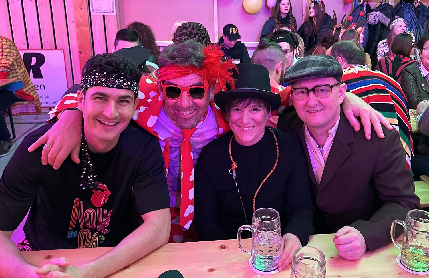 Die “Eichendorfer Lokalpolitiker” (von links: Armin Salzberger, Werner Straubinger, Birgit Knogl und Bürgermeister Josef Beham) genossen die gute Stimmung bei der Faschingsgaudi des FC Dornach.