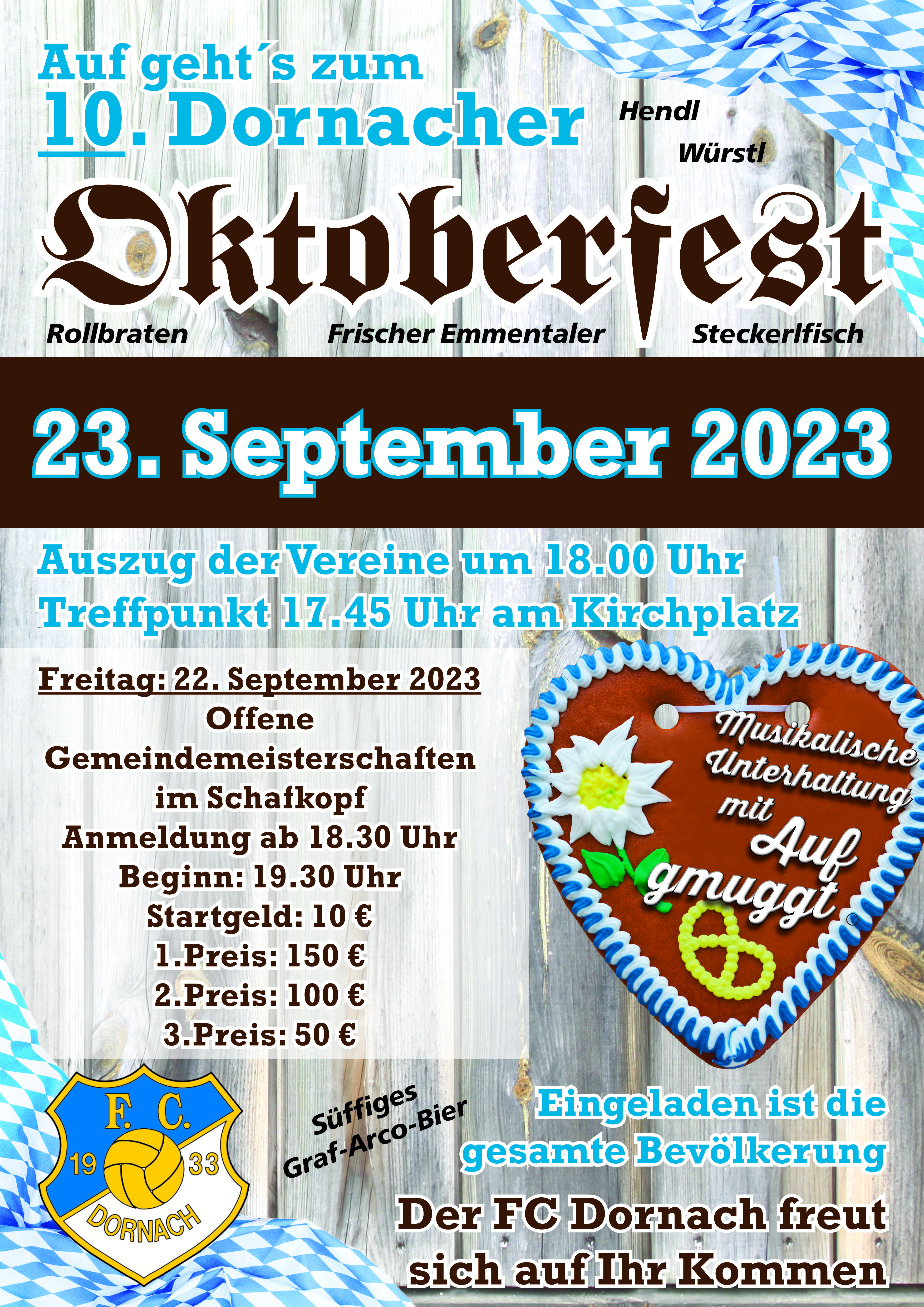 Am Vorabend des Dornacher Oktoberfestes fand beim FC Dornach traditionell ein offenes Schafkopfturnier statt, zu dem alle Schafkopffreunde aus nah und fern eingeladen waren. Für die Sieger standen...